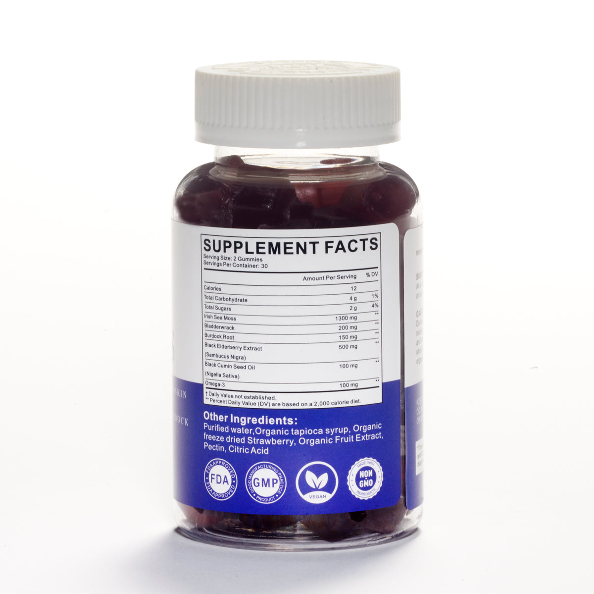 Seamoss blend Gummies with black seed oil, Elderberry and Burdock Root.