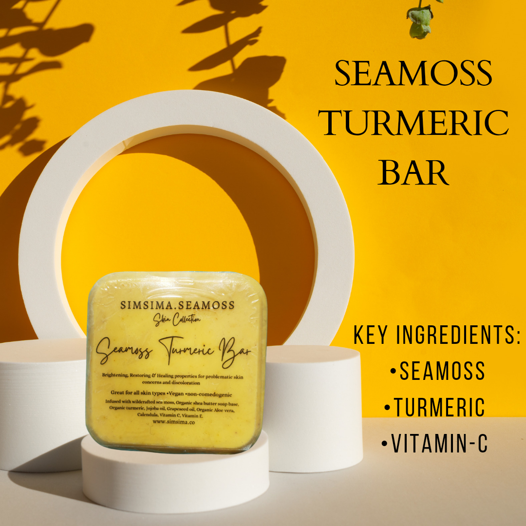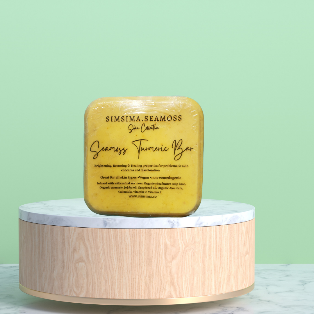 Our Sea Moss Turmeric bar is filled with 100% wildcrafted seamoss which provides the essential minerals such as protein, fiber, beta- carotene, magnesium, potassium, iron, zinc and Collagen into our skin.
